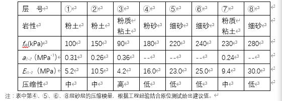 各層土承載力特征值及壓縮性        3.1